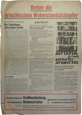Verein griechischer Studenten und Akademiker in Berlin, Information über Griechenland / Komitee der 100 für die Freiheit Griechenlands, Unterschriftensammlung für die Blockierung der griechischen Militärmission / Club der EDA-Freunde Westberlin, Rettet die griechischen Widerstandskämpfer (Demonstration 18.01.1969).