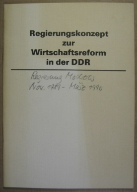 Zielstellung, Grundrichtungen, Etappen und unmittelbare Maßnahmen der Wirtschaftsreform in weiterer Verwirklichung der Regierungserklärung vom 17.11.1989. [Regierungskonzept zur Wirtschaftsreform in der DDR]