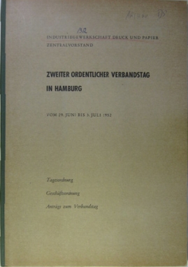 Zweiter ordentlicher Verbandstag in Hamburg vom 29. Juni bis 3. Juli 1952. Tagesordnung, Geschäftsordnung, Anträge zum Verbandsrag.