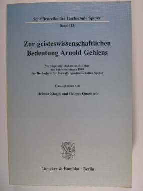 Zur geisteswissenschaftlichen Bedeutung Arnold Gehlens. Vorträge und Diskussionsbeiträge des Sonderseminars 1989 der Hochschule für Verwaltungswissenschaften Speyer.