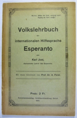 Mit einem Geleitwort von Prof. Dr. A. Forel. Beiliegend Zettel ´Grundriss der Esperanto-Grammatik´. Umschlag stellenweise gebräunt und mit leichten Randläsuren.