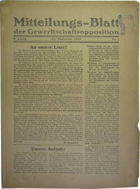 Mitteilungs-Blatt der Gewerkschaftsopposition.