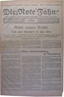 Zentralorgan der Kommunistischen Partei Deutschlands (Sektion der Kommunistischen Internationale). 3. Juni-Woche [1933], 16. Jahrgang, Nr. 19. Ausgabe B.