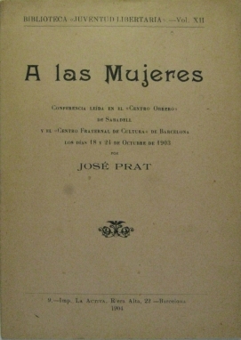 A las Mujeres. Conferencia Leída en el ´centro Obrero´ de Sabadell y el ´Centro Fratternal de Cultura´ de barcelona los días 18 y 24 de Octubre de 1903.