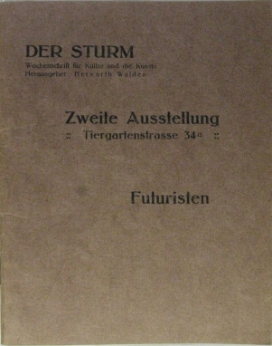2 Kataloge: I: Die Futuristen. Umberto Boccioni, Carlo D. Carra, Luigi Russolo, Gino Severini. [Ausstellungskatalog]. Fünftes bis sechstes Tausend dieses Katalogs. Der Sturm, (Berlin). [1912]. 28 S., 1 Bl. Mit zahlr. fotogr. Abb. 8°, Orig.-Broschur. - II: Zweite Ausstellung: Die Futuristen. Der Sturm, Berlin 1912. 40 S. + 2 Bll. (lose: Fortsetzung des Hauptkatalogs). Mit zahlr. Abb. 8°, Orig.-Broschur.