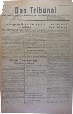 Zentralorgan der Roten Hilfe Deutschlands gegen Klassenjustiz, Faschismus und weißen Terror. Juni 1933.