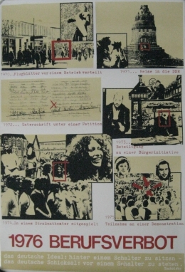 1976 Berufsverbot. 1970 Flugblätter vor einem Betrieb verteilt ... Das deutsche Ideal: hinter einem Schalter zu sitzen - das deutsche Schicksal: vor einem Schalter zu stehen (Tucholsky).