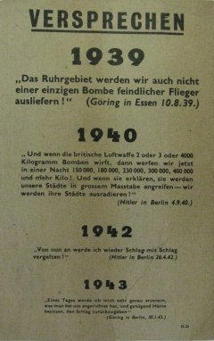 Über Deutschland abgeworfenes alliiertes Flugblatt, das mit Zitaten führender Nazis auf die Unfähigkeit hinweist, die alliierte Luftüberlegenheit zu bekämpfen. - Leicht fleckig und mit ca 8 cm langen Einriss.