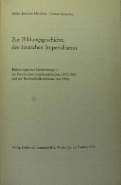 Zur Bildungsgeschichte des deutschen Imperialismus. Einleitungen zur Neuherausgabe der Preußischen Schulkonferenzen 1890/1900 und der Reichsschulkonferenz von 1920.