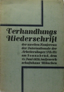 Verhandlungsniederschrift der 2. Konferenz der Internationale der Arbeitersänger -IDAS- am Sonnabend dem 15. Juni 1929 vormittags 9 Uhr im Gewerkschaftshaus zu München.